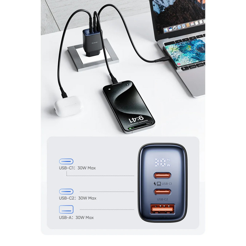 شارژر دیواری مک دودو Mcdodo CH-2180 Wall Charger توان 30 وات یک گزینه مناسب برای کاربرانی است که به دنبال یک آداپتور سریع، ایمن و چندمنظوره هستند. توان 30 واتی، وجود سه درگاه، قابلیت شارژ سریع و طراحی مقاوم، این محصول را به یکی از بهترین انتخابها در دسته شارژرهای دیواری تبدیل کرده است. اگر به دنبال یک شارژر مطمئن برای دستگاههای مختلف خود هستید، مک دودو CH-2180 میتواند یک انتخاب عالی باشد.